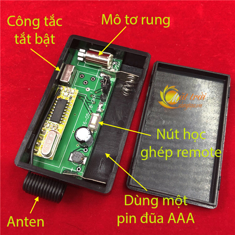 – Bộ nhận tín hiệu và rung kích thước nhỏ 58*35*15mm , sử dụng 01 pin đũa 1.5V loại nhỏ AAA (như pin điều khiển tivi)