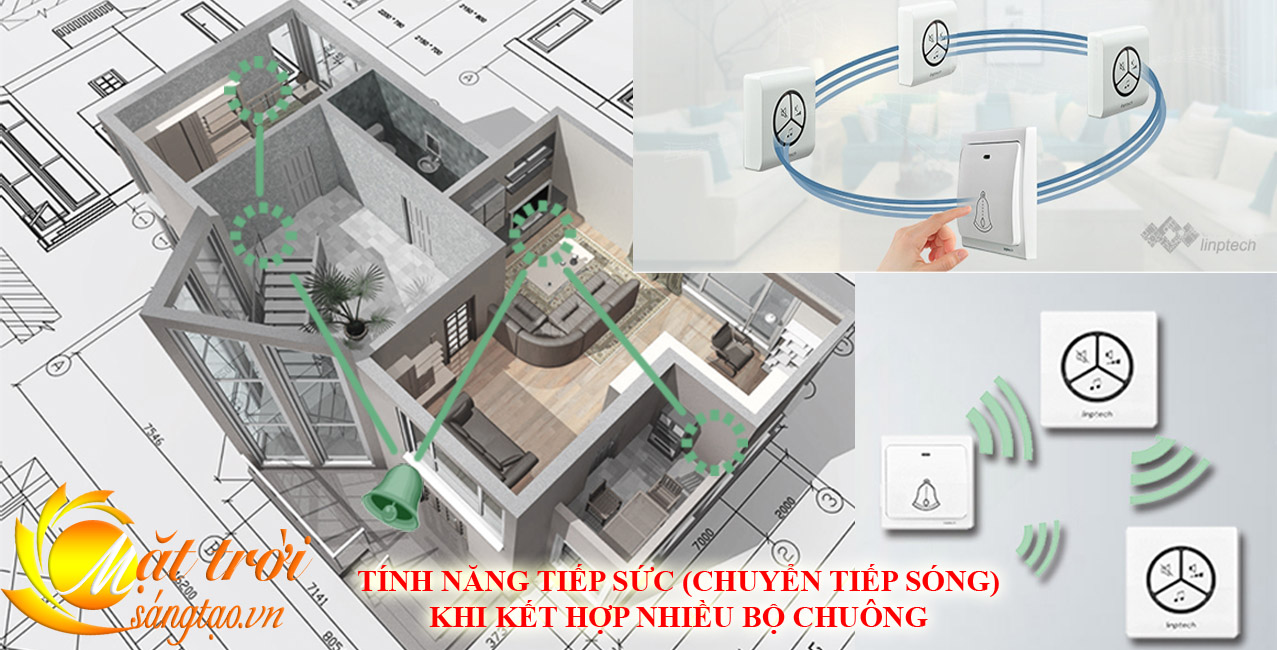 - Ứng dụng cao cho trong các công trình nhà ở, bệnh viện, trường học, công xưởng…do khả năng chuyển tiếp tín hiệu thông minh. Các chức năng trên bộ thu còn giúp bạn tắt tiếng vào ban đêm hoặc khi cần không gian yên tĩnh, điều chỉnh được âm lương to nhỏ phù hợp với mỗi gia đình. Ví dụ: Khi bạn đang nấu ăn , xem TV bạn có thể chỉnh loa to hơn, khi bạn làm việc bạn có thể tắt tiếng, nếu có người bấm chuông chỉ có đèn LED xanh nhấp nháy tín hiệu….Lưu ý: Chuông không dây LinPtech có 2 phiên bản: 1 phiên bản không có tính năng học lệnh và 1 phiên bản có tính năng học lệnh. Mattroisangtao.vn chỉ bán phiên bản có tính năng học lệnh do đó bạn có luôn tính năng mở rộng về sau: 1 nút bấm có thể kết hợp phát nhiều loa chuông(VD: Ở cổng để nút bấm, tầng 1,2 để 2 loa chuông cho rõ) hoặc nhiều nút bấm ở vị trí khác nhau cho học vào 1 loa chuông.