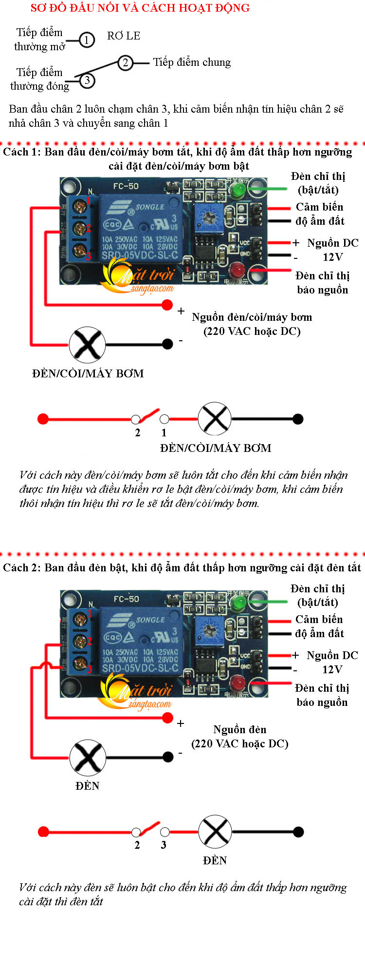 Bộ phận cảm biến độ ẩm đất sử dụng mạch chất lượng FR-04 2 mặt mạ nikel, chống oxy hóa, tĩnh điện. Bộ phận rơ le đóng cắt được tải dòng cao tới 10A và công suất lớn.