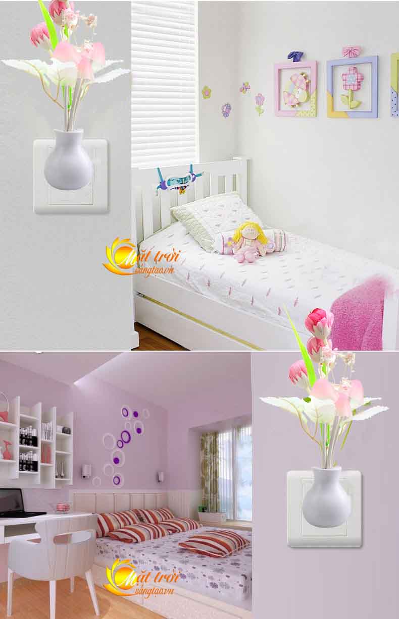 Đèn ngủ ngủ lọ hoa là một vật trang trí rất dễ thương và lãng mạn mang thiên nhiên vào trong nhà bạn. Đèn có hệ thống cảm biến ánh sáng, khi xung quanh thiếu ánh sáng đèn tự động bật sáng lung linh.