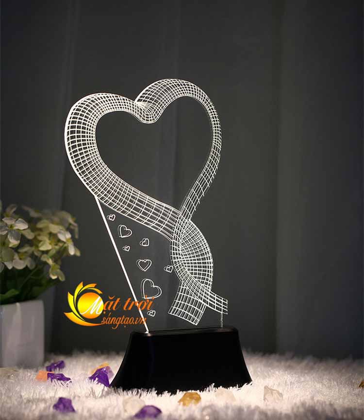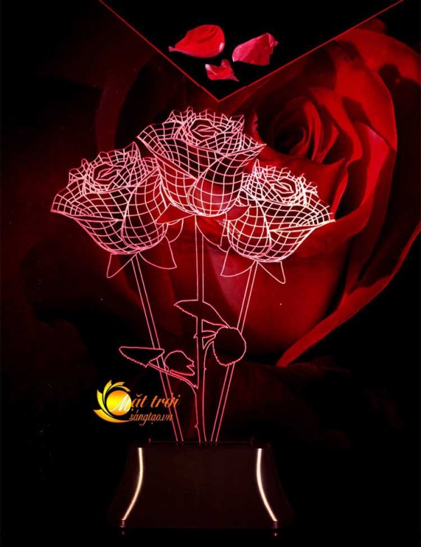 Đèn trang trí đổi màu khắc laser 3D hình hoa hồng, trái tim, một món quá đặc biệt cho người ấy.