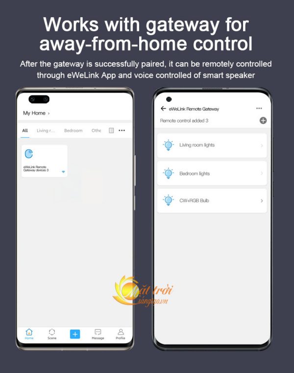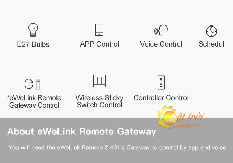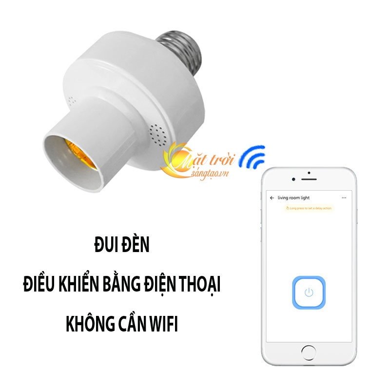 CHÚ Ý: Đui đèn điều khiển bằng sóng wireless 2.4Ghz phát ra từ điện thoại hoặc remote (không cần wifi hay internet) nên chỉ điều khiển được trong khoảng cách 30m đổ lại (tùy môi trường)