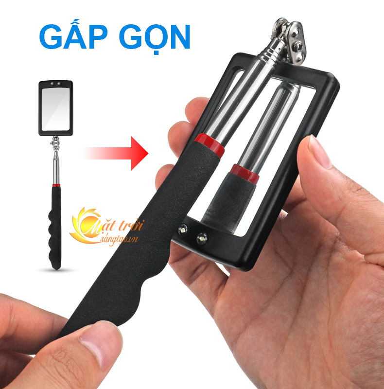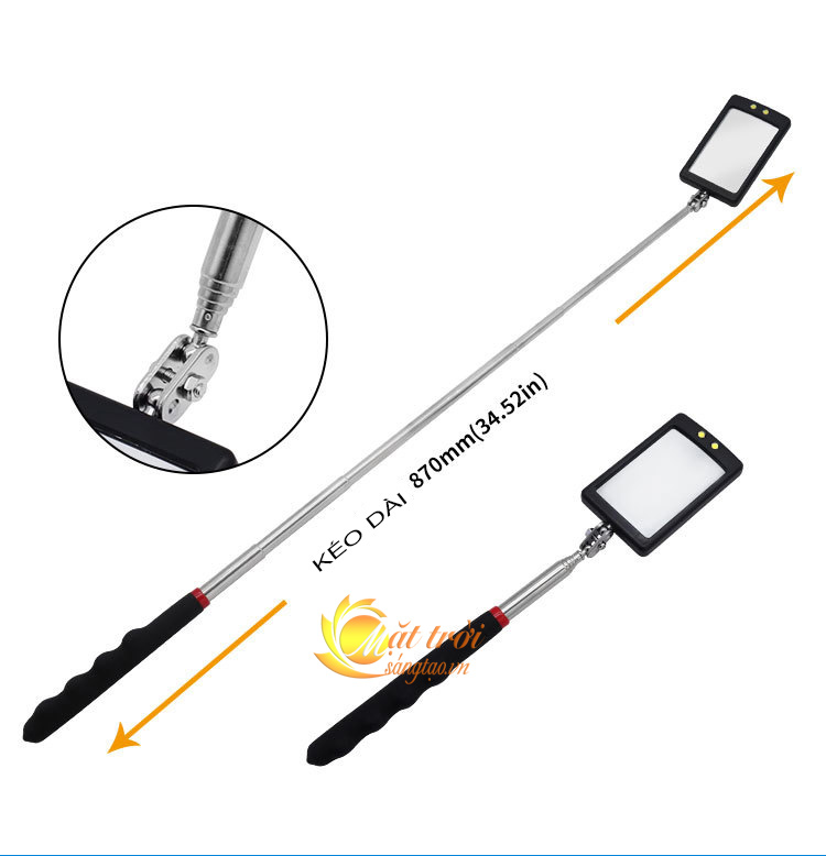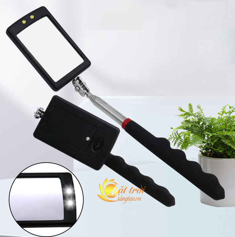 Gương dùng để tìm đồ trong các góc khuất không thể nhìn thấy, cán kéo dài 87cm, có đèn chiếu sáng…